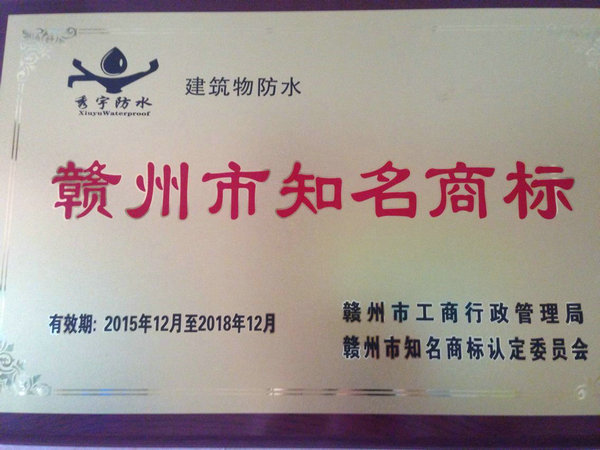 2015年12月22日,我司使用在第37類“建筑物防水”上第11553032號(hào)注冊(cè)商標(biāo)被認(rèn)定為贛州市知名商標(biāo)。在贛州的建筑物防水史上添上一筆新色彩,刷新了新紀(jì)錄。